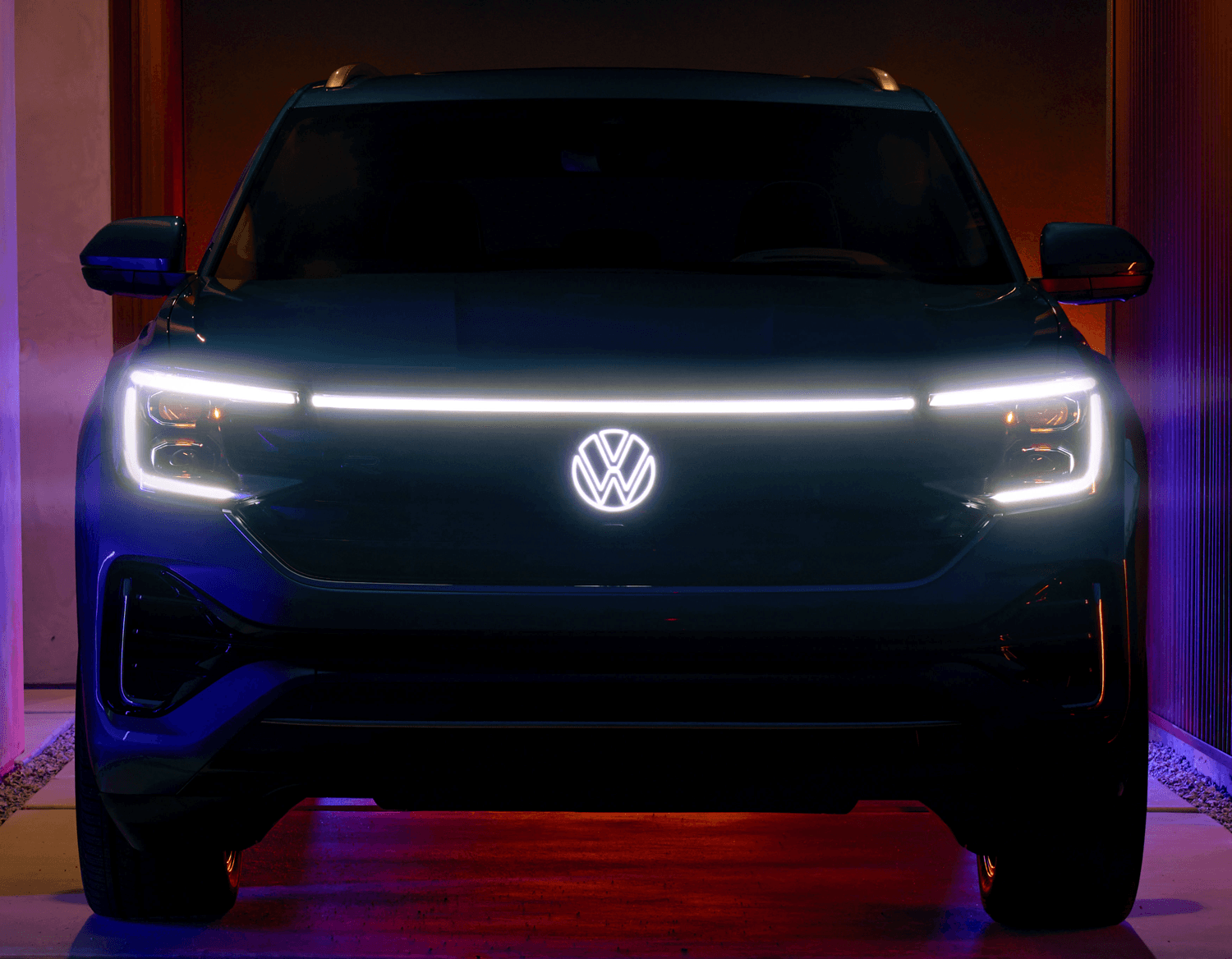 An illuminated light bar and "VW" logo are optional, lighting up the front end.